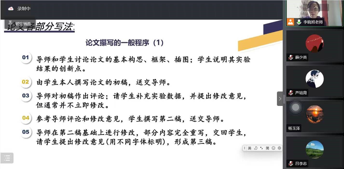 李晓旭教授针对如何安排科研时间,发表论文的必要性,在撰写论文方面研究生应该怎么做,论文撰写的一般程序,如何发表高水平论文,撰写论文的学术道德问题,毕业要求等多方面对新生进行了相关教育。在入学伊始,对我院每位新生讲授了学术研究准则和学术目标引导。