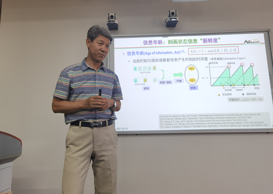 牛老师的报告题目是:面向信息时效性的车联网及时通信与计算。报告介绍了在车联网环境下,实现L4/L5级自动驾驶的必由之路。在对系统状态信息时效性的有效控制方面,报告在描述信息新鲜度的信息年龄(AoI: Age of Information)性能指标基础上,提出了一种新的时效性表征指标-信息紧迫度(UoI: Urgency-of-Information),并在此基础上给出了最优的小车编队驾驶控制算法,验证了所提UoI指标的有效性。