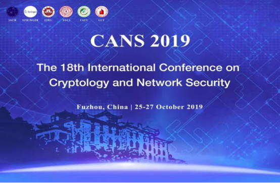 第18届密码学与网络安全国际学术会议(The 18th International Conference on Cryptology and Network Security, CANS 2019)于10月25日至27日在福州召开。CANS是安全领域公认的年度会议,重点讨论密码学、大数据,网络和计算机安全的所有方面,吸引了世界各地的著名科学家汇报其最新研究成果。早期分别在台北('01),旧金山('02),迈阿密('03),厦门('05),苏州('06),新加坡('07),香港('08),金泽(Kanazawa) ('09),吉隆坡('10),三亚('11),达姆施塔特('12),帕拉里('13),克里特('14),马拉喀什('15),米兰('16),香港 ('17)和那不勒斯('18)举办。