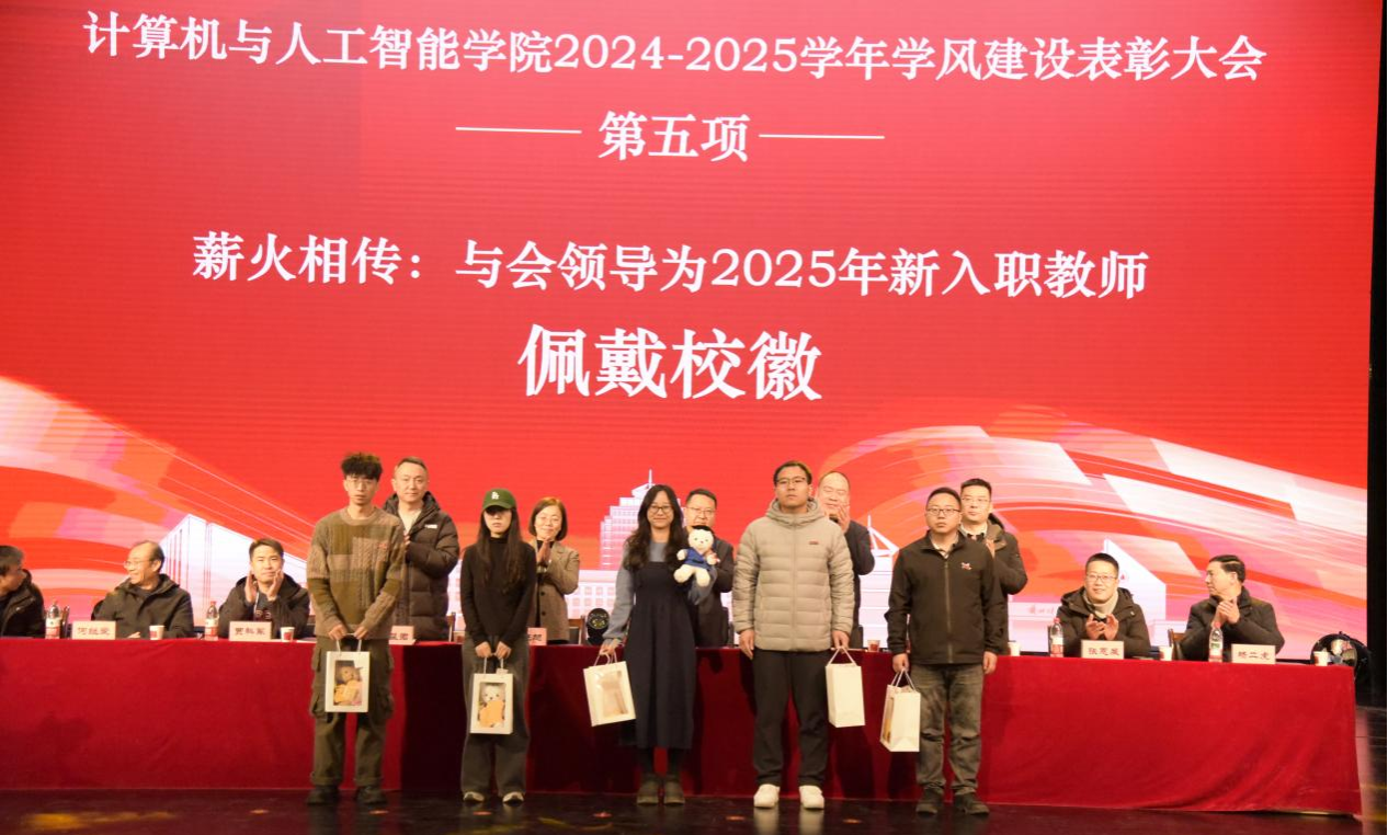 活动中,学院对过去一学年涌现出的先进集体与优秀个人进行了隆重表彰,现场气氛热烈、鼓舞人心。与会领导为2025年新入职教师佩戴校徽,这一环节象征着育人精神的代代传承和学院事业的持续发展。