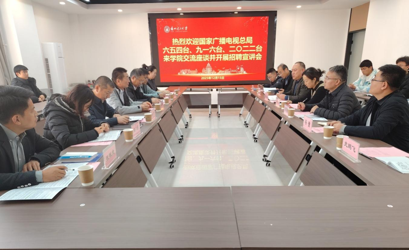 12月15日,国家广播电视总局六五四台党委书记、台长王晓平,九一六台党委书记、台长高峰,二〇二二台党委书记、台长关吉及各台人事部门人员来校交流座谈。校学生就业创业服务中心副主任宋婵、计智学院党委书记郭备、副院长贾科军教授、通信工程系系主任何继爱教授、毕业年级辅导员及部分2026届本硕学生参加。会议由学院党委副书记来明展主持。