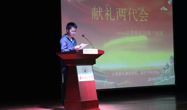 “献礼两代会,让青春在团旗下绽放” ——计通学院举办第一届“雏鹰杯”演讲比赛 参赛学生演讲 评委认真聆听 评委与参赛学生合影 为迎接两代会的胜利召开,引导同学弘扬爱国...
