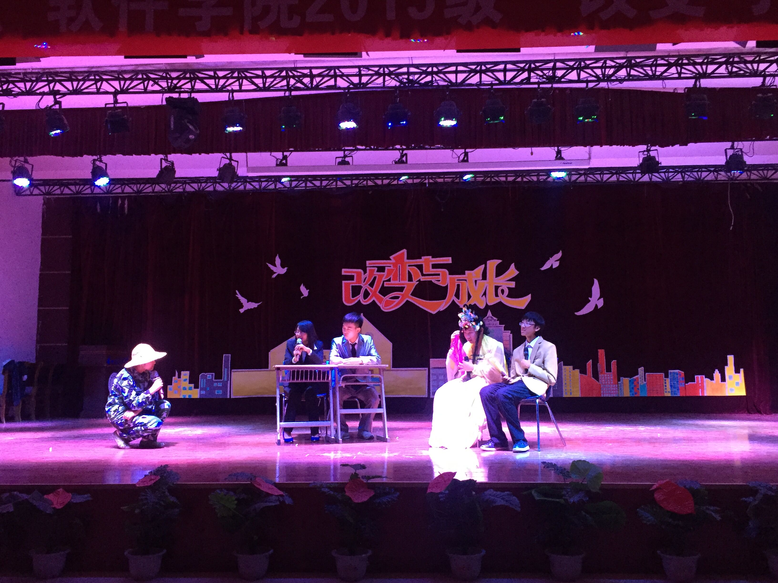 计通学院、软件学院15级班级风采大赛决赛成功举行 小品《应聘》 歌曲合唱《爱》 二胡独奏《战马奔腾》 配乐朗诵《少年中国说》 相声《满腹经纶》 参赛演员合影留念...