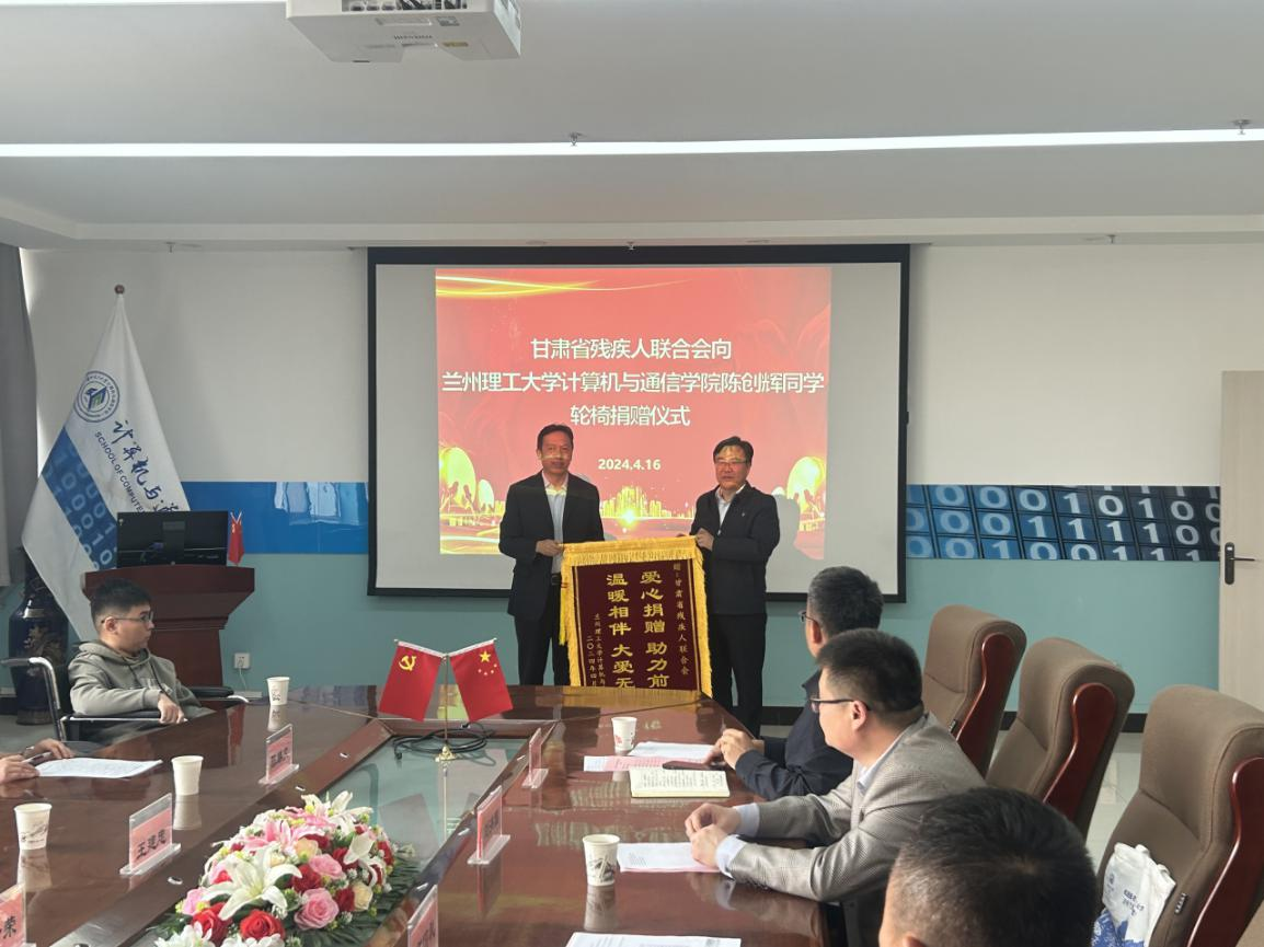 4月16日下午,计算机与通信学院举办甘肃省残疾人联合会向计通学院2023级软件工程1班陈创辉同学捐赠电动轮椅车仪式。出席仪式的有省残联辅助器具资源中心副主任王建忠、科长夏步荣,党...