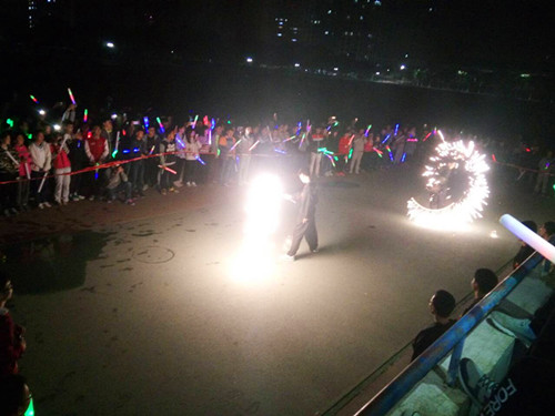 荧光夜跑,挥洒青春 ——计通学院举办“荧光夜跑”活动 “烟火舞”双截棍表演 大家挥舞荧光棒一,一起奔跑 为了展现工大学子的阳光和活力,锻炼同学们的身体素质和推进我校阳...