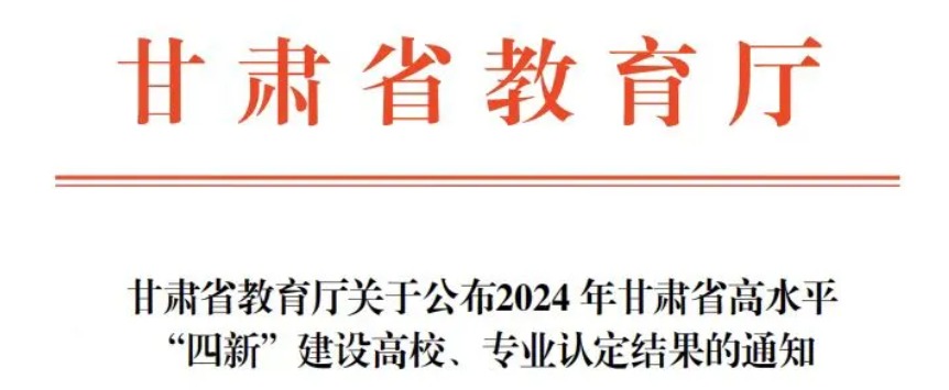 近期,甘肃省教育厅正式发布《甘肃省教育厅关于公布2024年甘肃省高水平“四新”建设高校、专业认定结果的通知》,我院计算机科学与技术专业入选2024年甘肃省高水平“新工科”建设专业。...