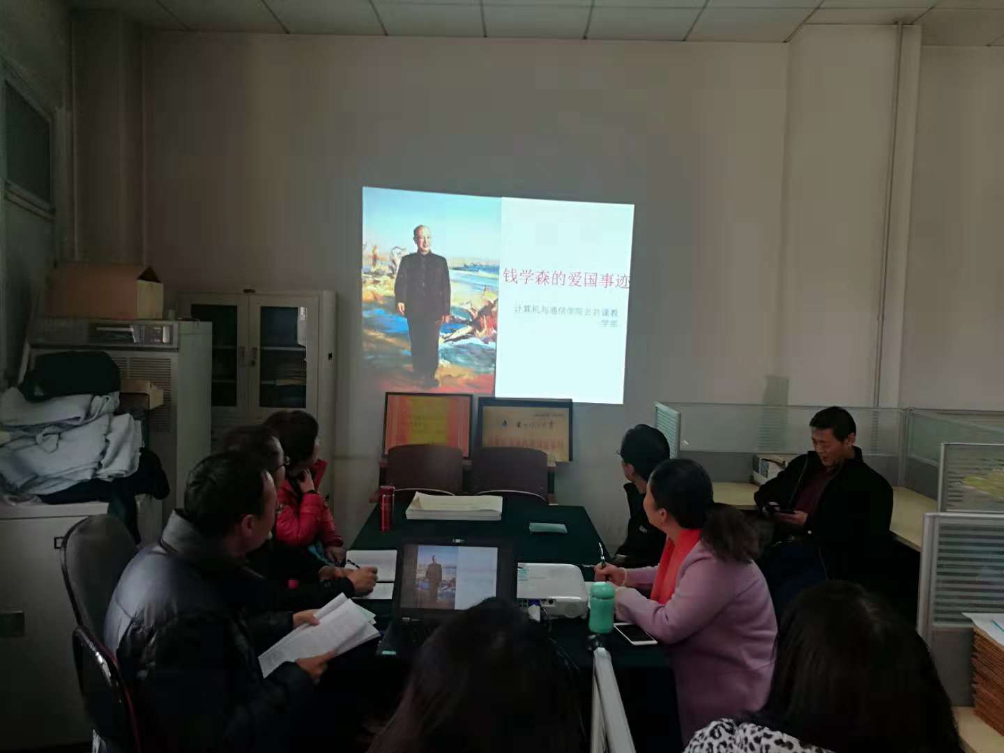 为落实好“三会一课”制度,进一步加强学习型党组织建设,2018年11月16日,兰州理工大学计算机与通信学院公共课部教师支部全体党员在课部办公室共同上了一节党课,党课的主题是《钱学森...
